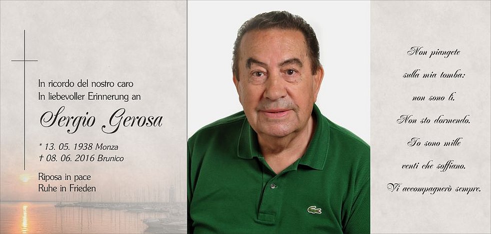 Der Trauergottesdienst findet am Samstag, 11. Juni, um 14 Uhr in der Pfarrkirche von Bruneck statt.