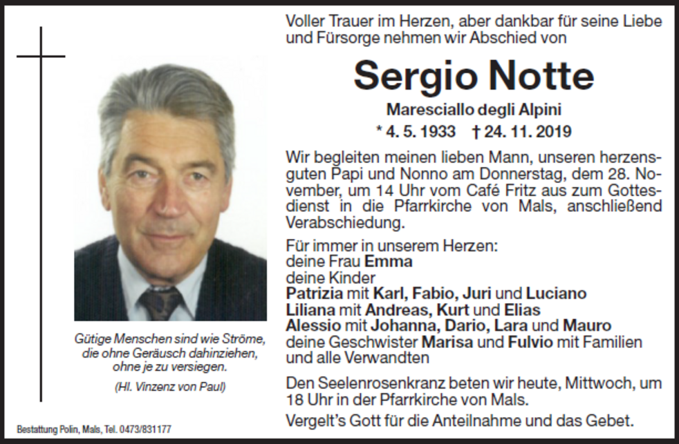 Wir begleiten meinen lieben Mann, unseren herzensguten Papi und Nonno