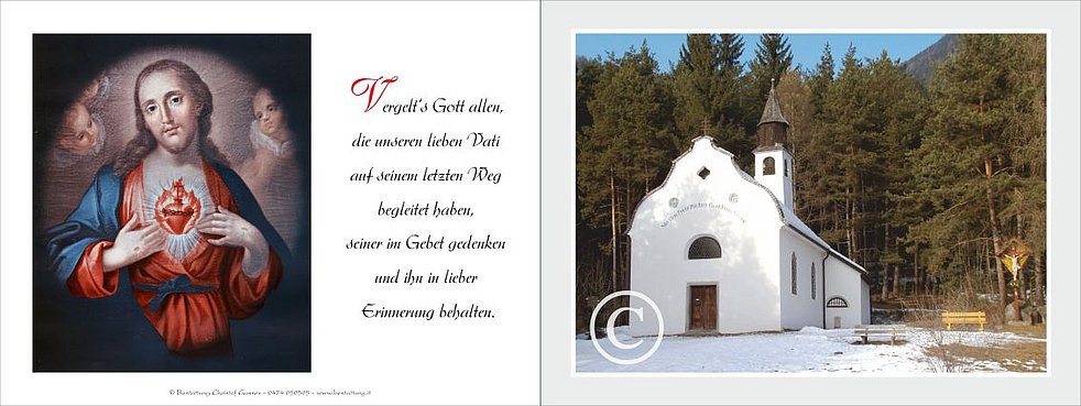 Ein besonderer Dank gilt dem Hausarzt Dr. Albert Hopfgartner, allen vom Hauspflegedienst Bruneck sowie den Ärzten und dem gesamten Pflegepersonal der Abteilung Medizin A West vom Krankenhaus Bruneck.