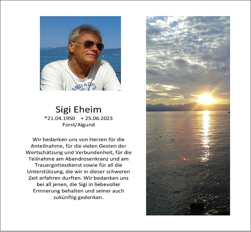 Danke allen, die am Abendrosenkranz sowie an der Trauerfeier teilnehmen und unseren Sigi in guter Erinnerung behalten.