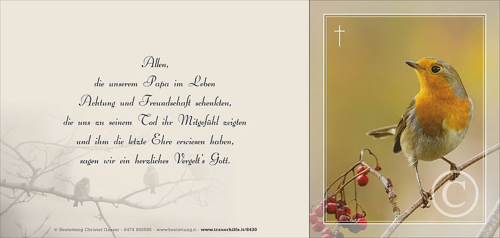 ...mit dem Zwitschern deiner Vögel wird deine Seele nun zum Himmel getragen