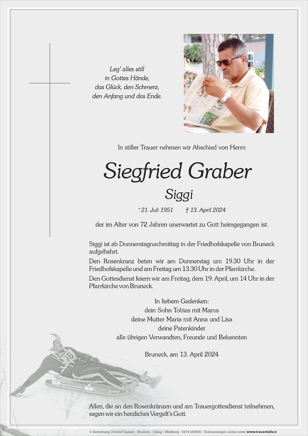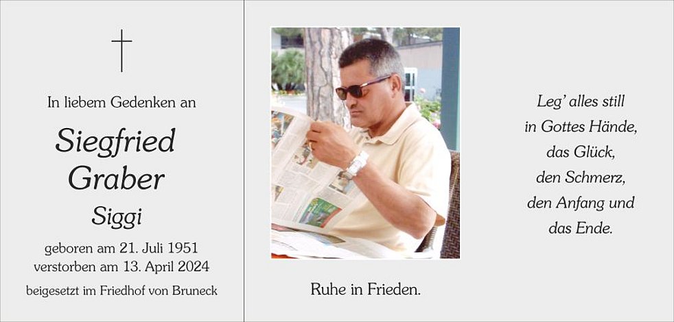 Siggi ist ab Donnerstagnachmittag in der Friedhofskapelle von Bruneck aufgebahrt.