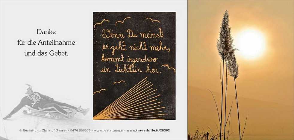 Allen, die an den Rosenkränzen und am Trauergottesdienst teilnehmen, sagen wir ein herzliches Vergelt’s Gott.