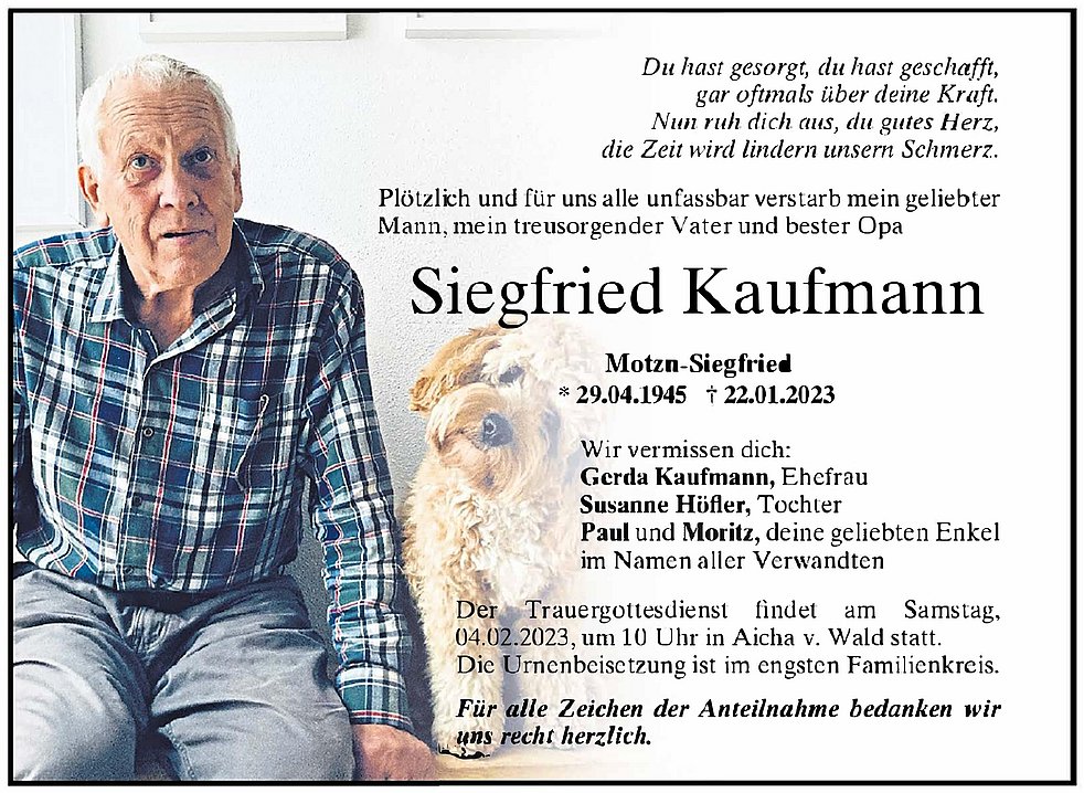 Bin gegangen sanft und leise auf meine allerletzte Reise.Folge des Schoepfers Ruf dem Herrn der alles Leben schuf Das ewige Licht moege Ihr Begleiter sein