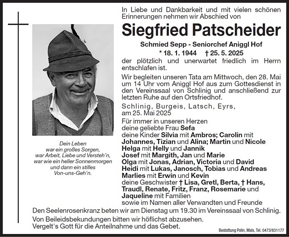 Vergelt‘s Gott für die Anteilnahme und das Gebet.