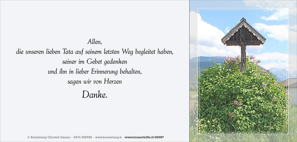 Allen, die an den Rosenkränzen sowie an der Beerdigung teilnehmen und unseren Tata in lieber Erinnerung behalten, sagen wir ein herzliches Vergelt’s Gott.