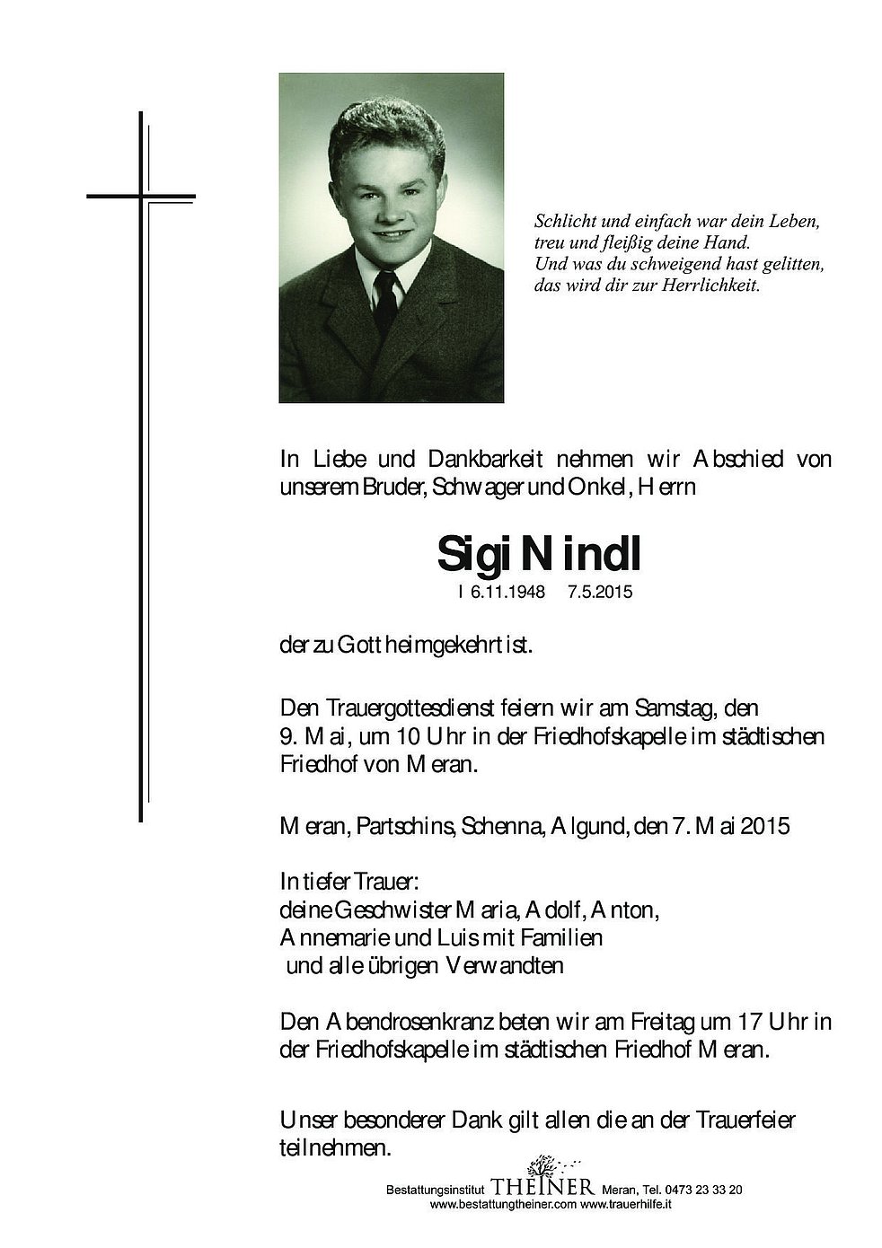 9. Mai, um 10 Uhr in der Friedhofskapelle im städtischen