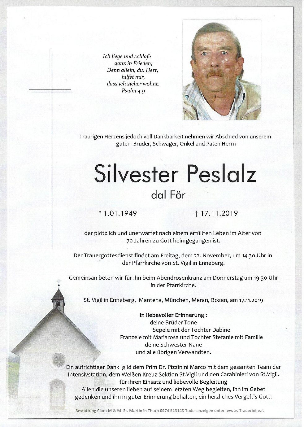Der Trauergottesdienst findet am Freitag, dem 22. November, um 14.30 Uhr in der Pfarrkirche von St. Vigil in Enneberg.