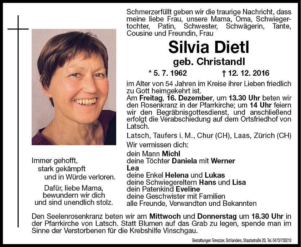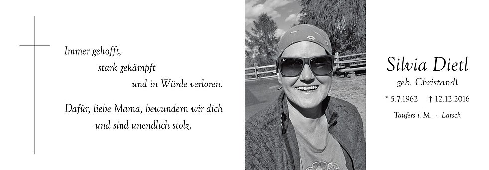 Statt Blumen auf das Grab zu legen, spende man im Sinne der Verstorbenen für die Krebshilfe Vinschgau.