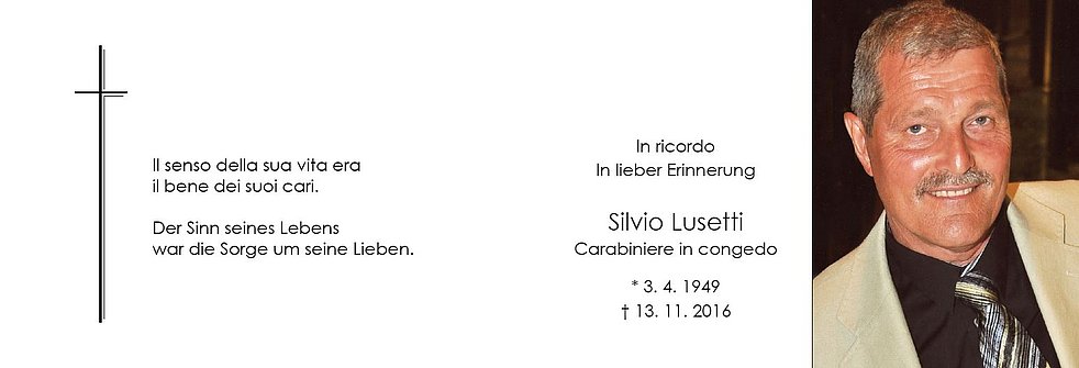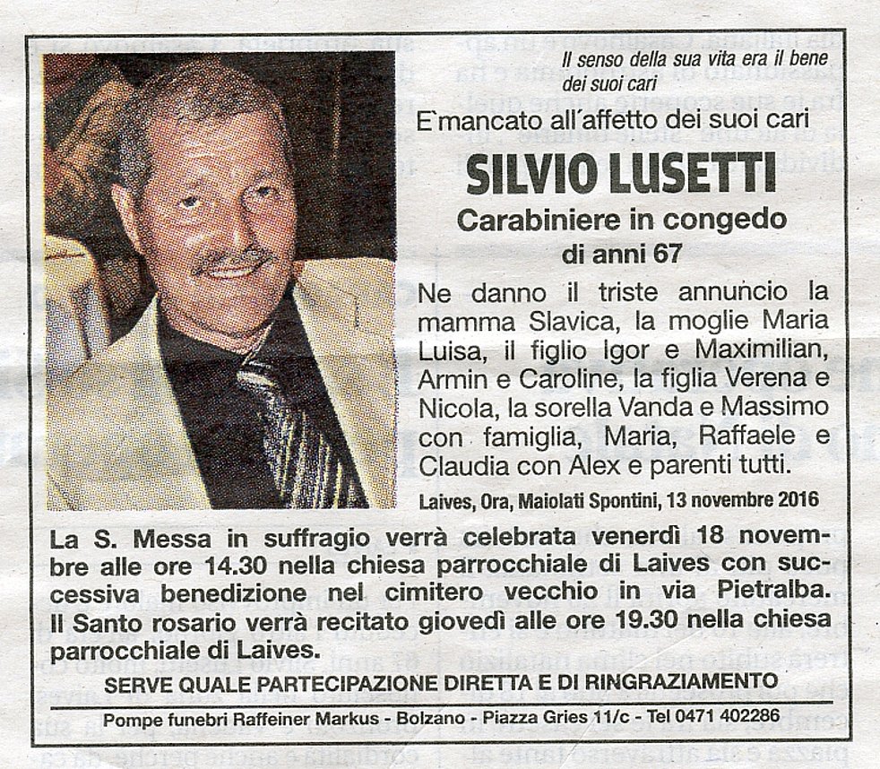 Ne danno il triste annuncio la mamma Slavica, la moglie Maria Luisa, il figlio Igor e Maximilian, Armin e Caroline, la figlia Verena e Nicola, la sorella Vanda e Massimo con famiglia, Maria, Raffaele e Claudia con Alex e parenti tutti.