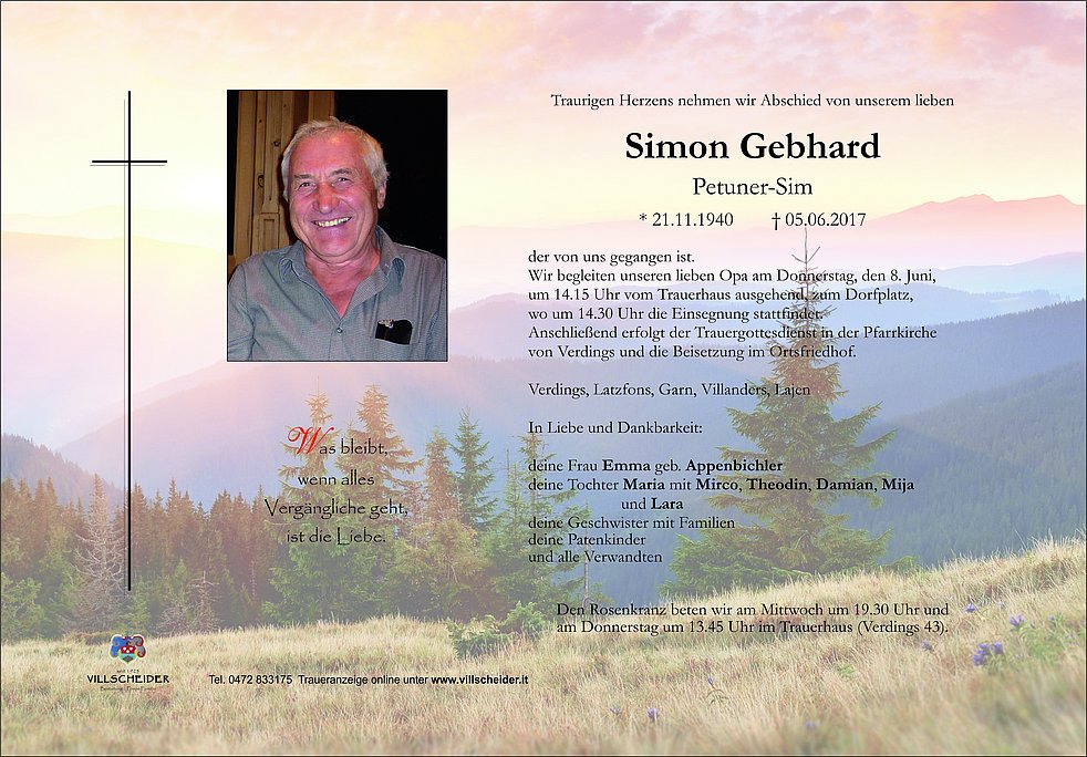 Wir begleiten unseren lieben Opa am Donnerstag, den 8. Juni,