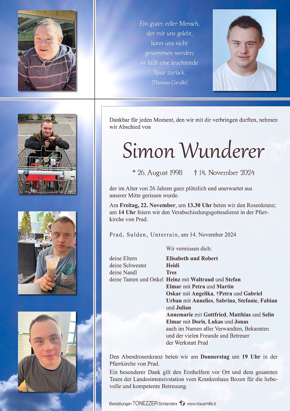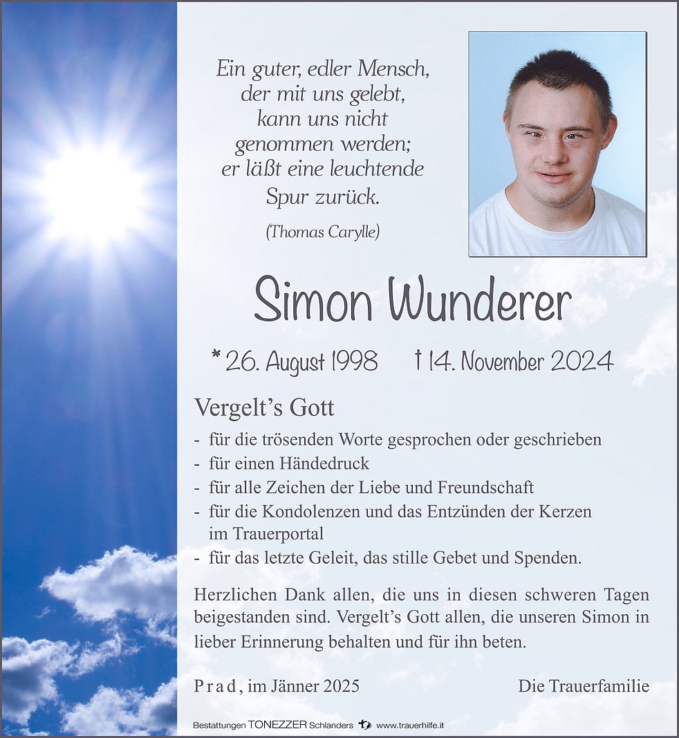 Ein besonderer Dank gilt den Ersthelfern vor Ort und dem gesamten Team der Landesintensivstation vom Krankenhaus Bozen für die liebevolle und kompetente Betreuung.