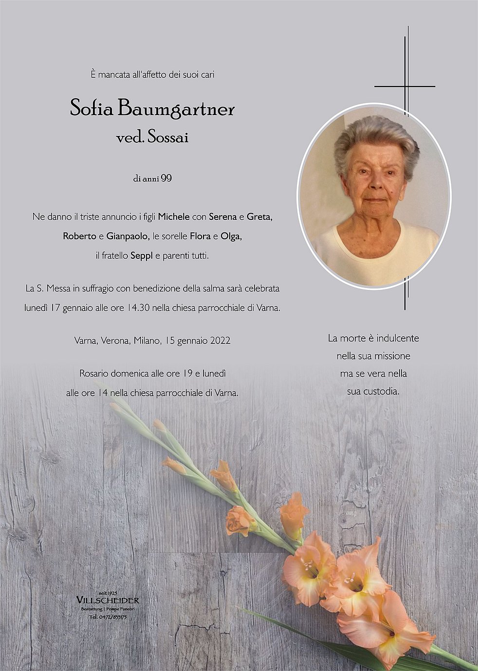 Trauerfeier: 17.01. - 14:30 Uhr Pfarrkirche von Vahrn