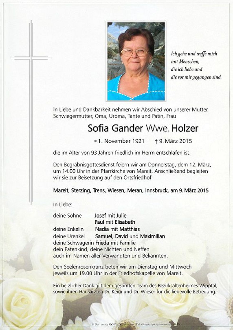 die im Alter von 93 Jahren friedlich im Herrn entschlafen ist.