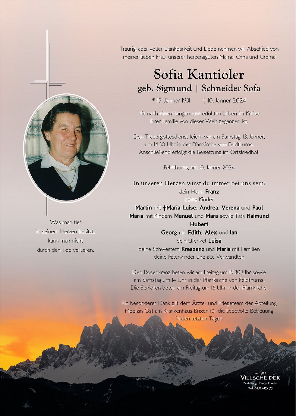 Trauerfeier: 13.01. - 14:30 Uhr Feldthurns