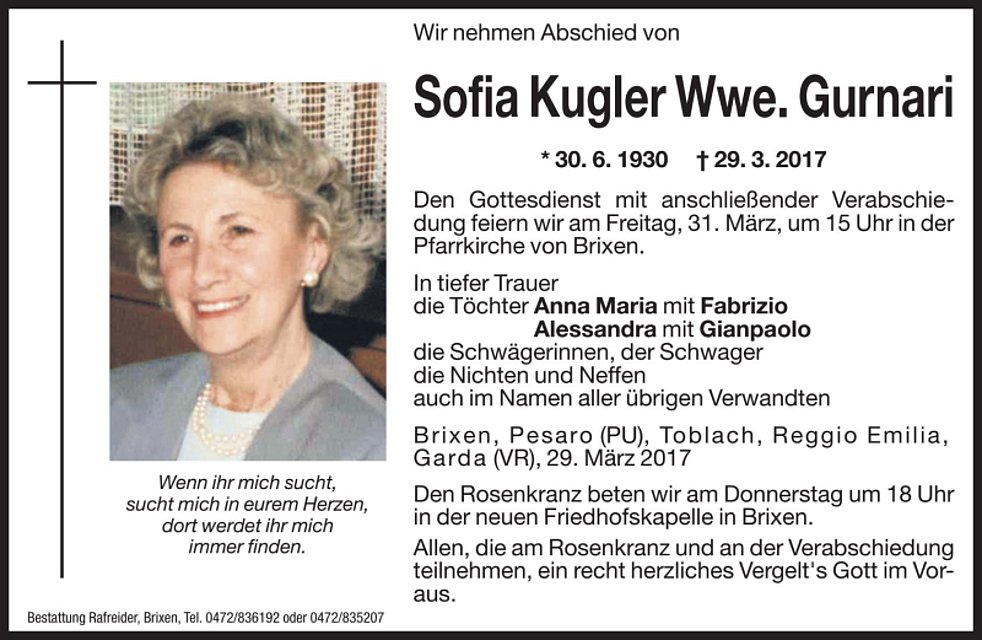 Den Gottesdienst mit anschließender Verabschiedung feiern wir am Freitag, 31. März, um 15 Uhr in der Pfarrkirche von Brixen.