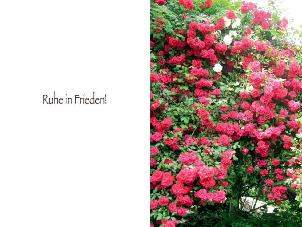 Anstelle von Blumen möge man für wohltätige Zwecke spenden.