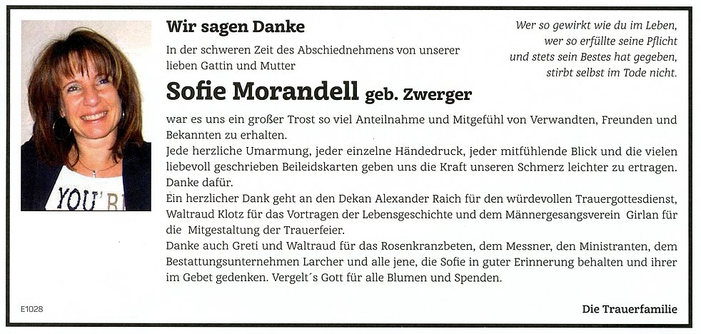 Allen, die am Rosenkranz und an der Beerdigung teilnehmen, im Voraus ein herzliches Vergelt´s Gott.