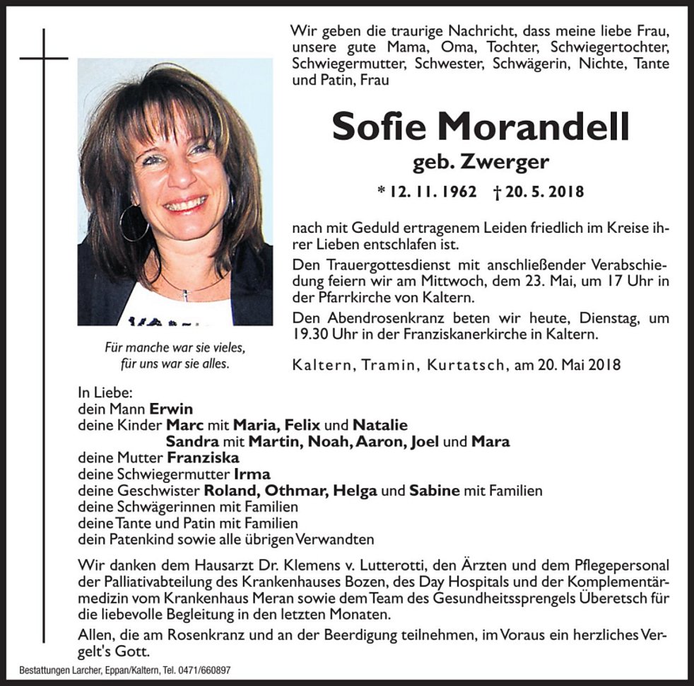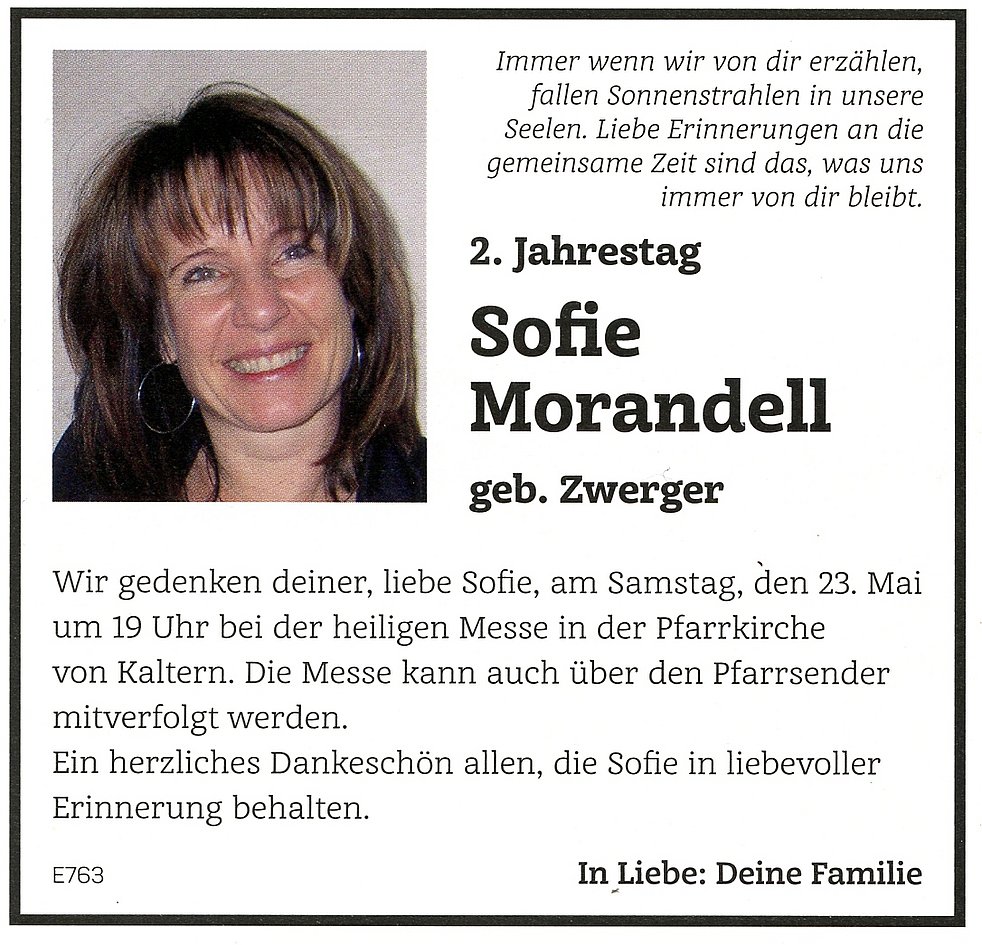 Den Trauergottesdienst mit anschließender Verabschiedung feiern wir am Mittwoch, dem 23. Mai um 17 Uhr in der Pfarrkirche von Kaltern.