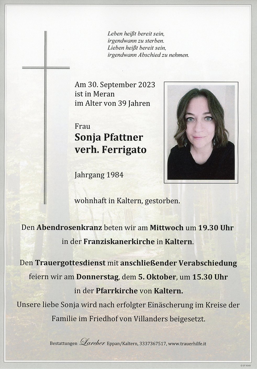Den Trauergottesdienst mit anschließender Verabschiedung feiern wir am Donnerstag, dem 5. Oktober um 15.30 Uhr in der Pfarrkirche von Kaltern.
