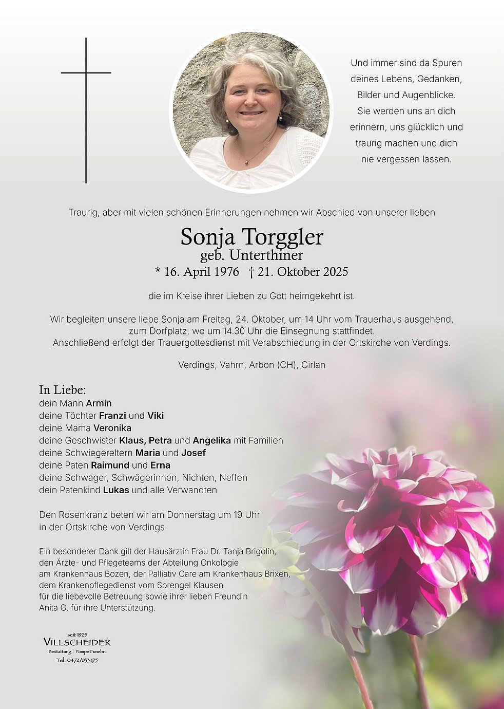 Der all zu frühe Tod deiner lieben Frau macht uns betroffen. Wir wünschen dir viel Kraft und Zuversicht in dieser schweren Stunde. Aufrichtige Anteilnahme entbieten Andreas und Ruth v.Mörl