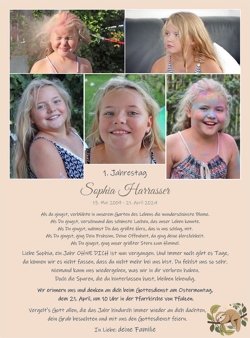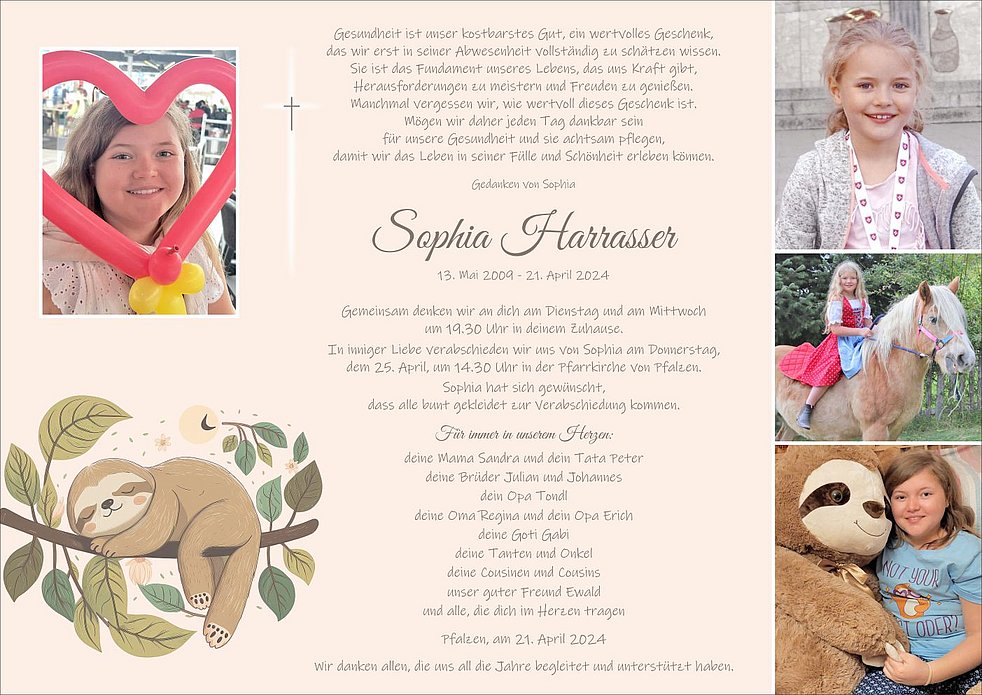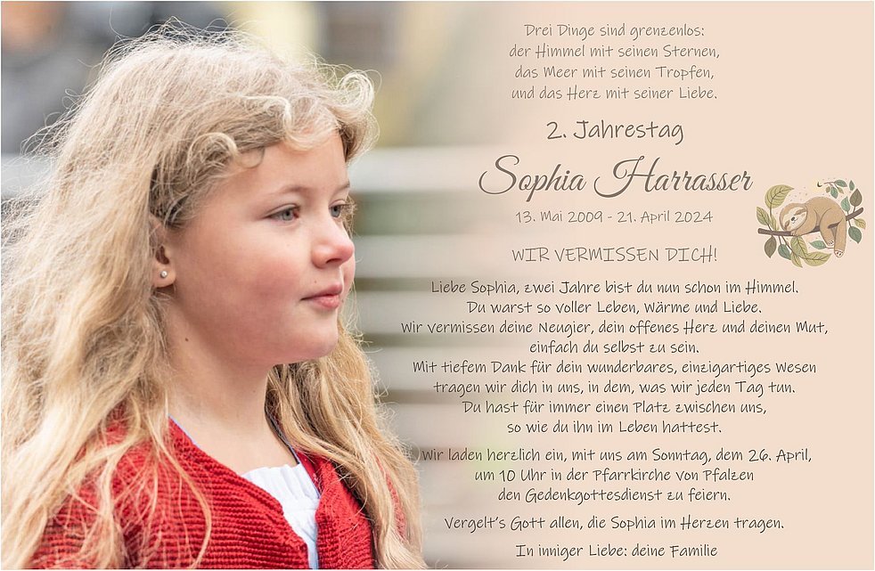 In inniger Liebe verabschieden wir uns von Sophia am Donnerstag,