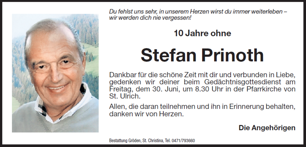 Jahresgottesdienst: 30.06. - 08:30 Uhr Pfarrkirche St. Ulrich