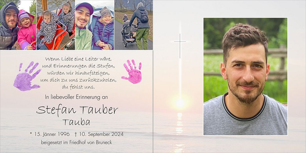 Wir verabschieden uns von unserem lieben Stefan am Donnerstag, dem 19. September, um 14 Uhr in der Pfarrkirche von Bruneck.