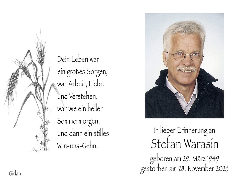 Traurig aber dankbar nehmen wir Abschied von meinem lieben Mann, unserem guten Vater, Schwiegervater, Opa, Schwager, Onkel und Paten