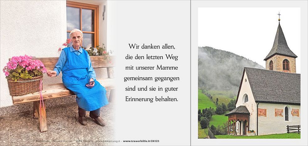 Dankbar für die lange Zeit, die wir mit dir verbringen durften und dankbar für alles, was du für uns getan hast, nehmen wir Abschied von meiner lieben Frau, unserer Mamme, Schwiegermutter und Oma, Frau