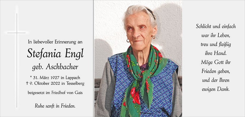 * 31. März 1927 in Lappach † 9. Oktober 2022 in Tesselberg