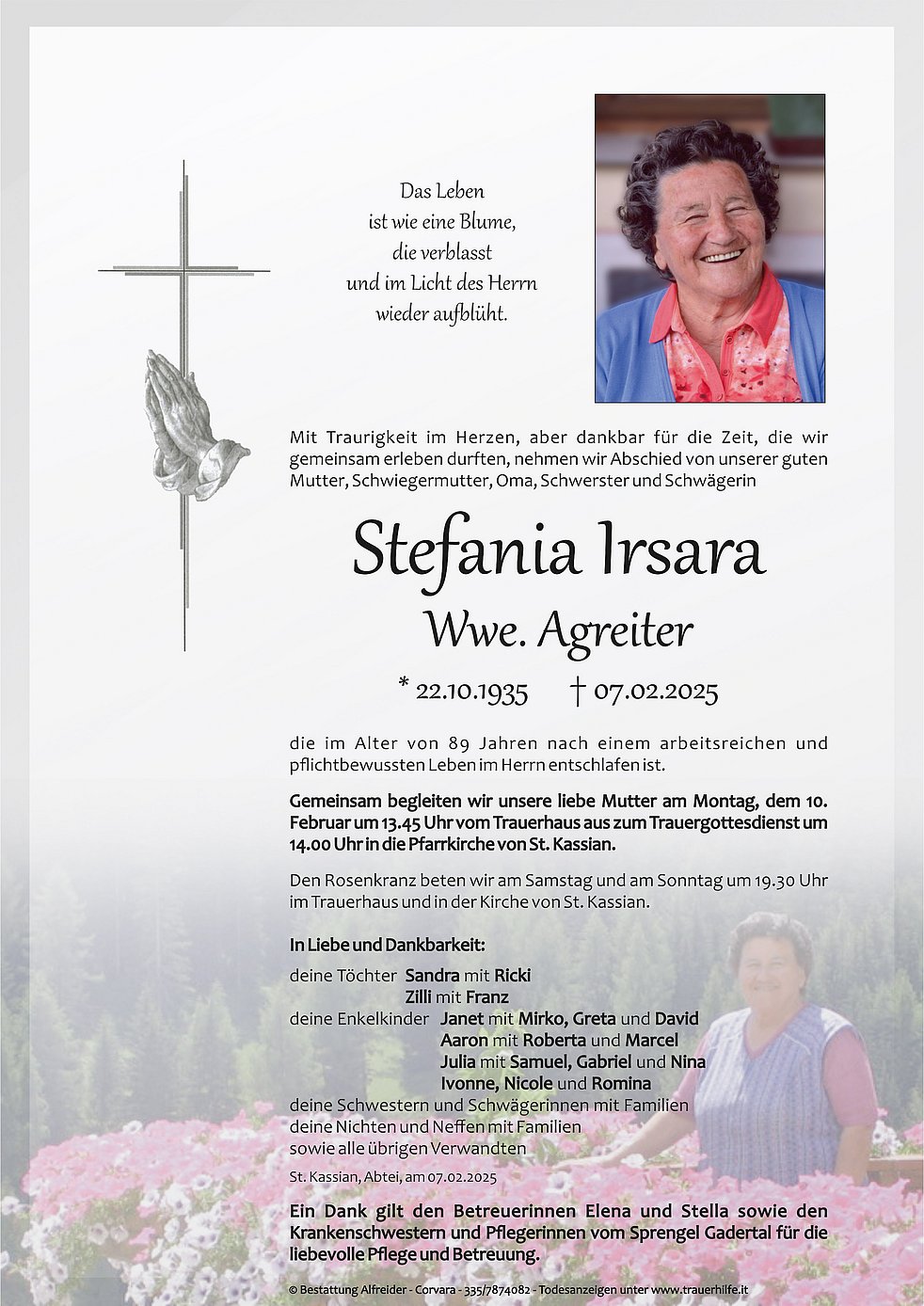 Verabschiedung: 10.02. - 14:00 Uhr Pfarrkirche St. Kassian