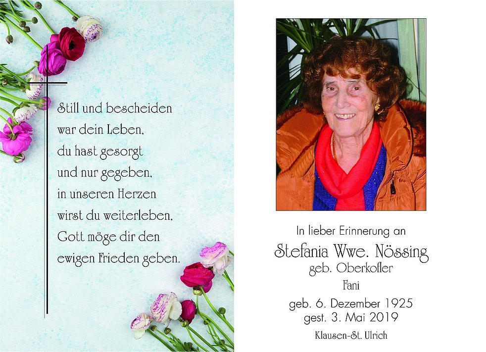 Trauerfeier: 06.05. - 14:30 Uhr Klausen; Chiusa