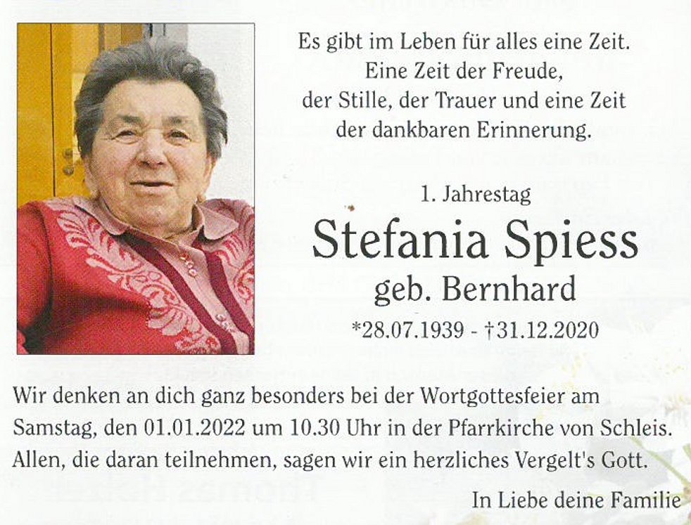 Wir gedenken ihrer heute Donnerstag um 17 Uhr bei der Wortgottesfeier,