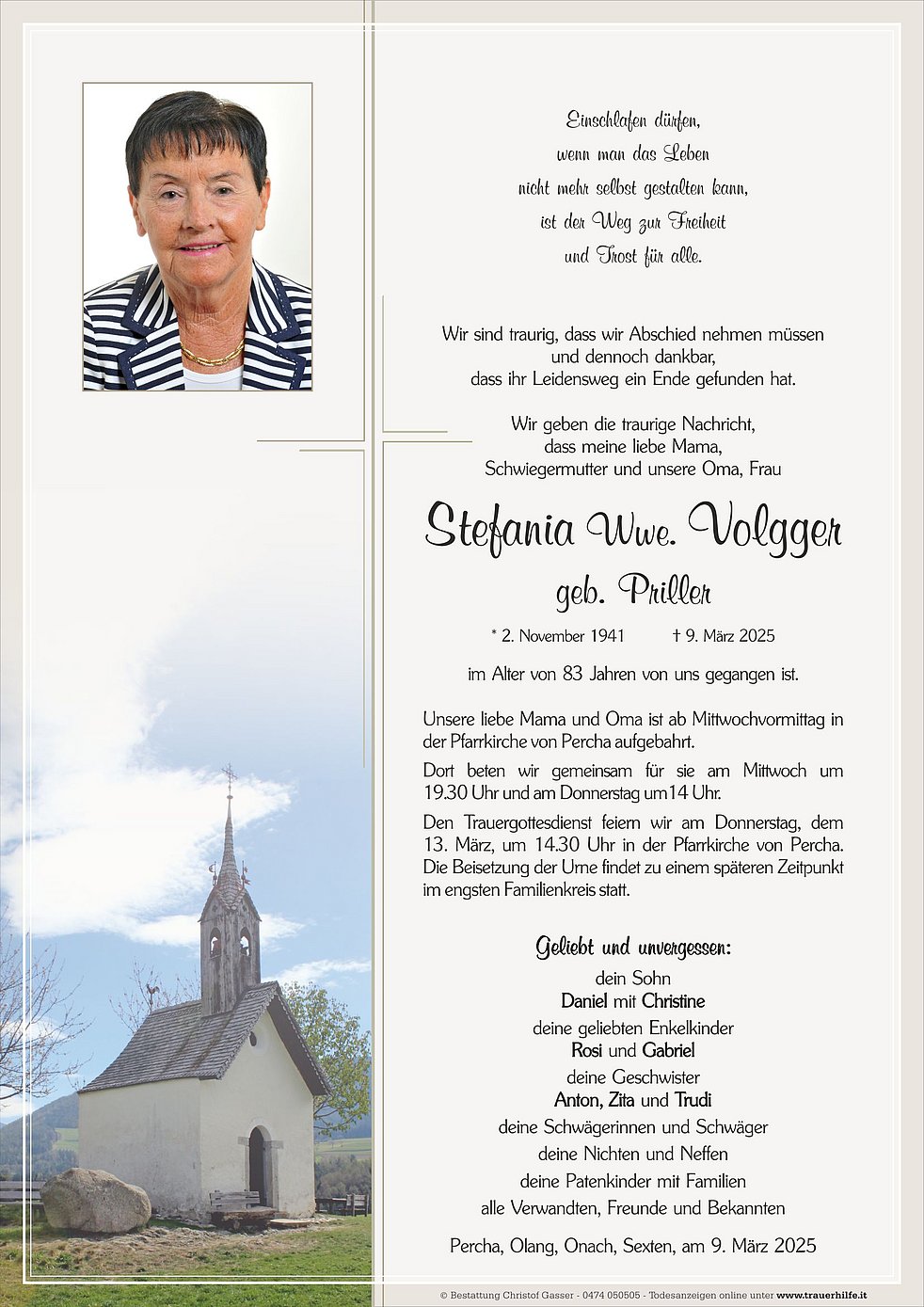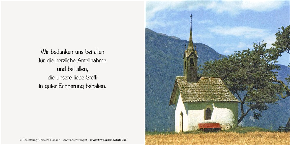 Den Trauergottesdienst feiern wir am Donnerstag, dem13. März, um 14.30 Uhr in der Pfarrkirche von Percha.
