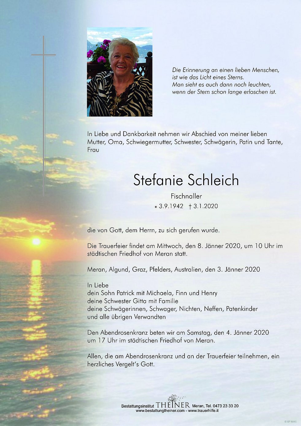 Die Trauerfeier findet am Mittwoch, den 8. Jänner 2020, um 10 Uhr im städtischen Friedhof von Meran statt.