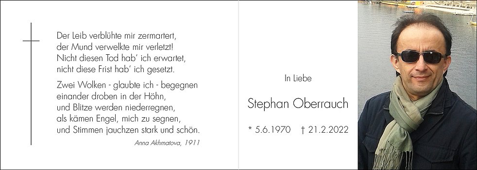 Ein besonderen Dank gilt dem Personal der Abteilung Onkologie, dem Palliativteam des Krankenhauses Bozen und dem Hauspflege - und Sozialsprengeldienst Rentsch für die liebevolle Betreuung.