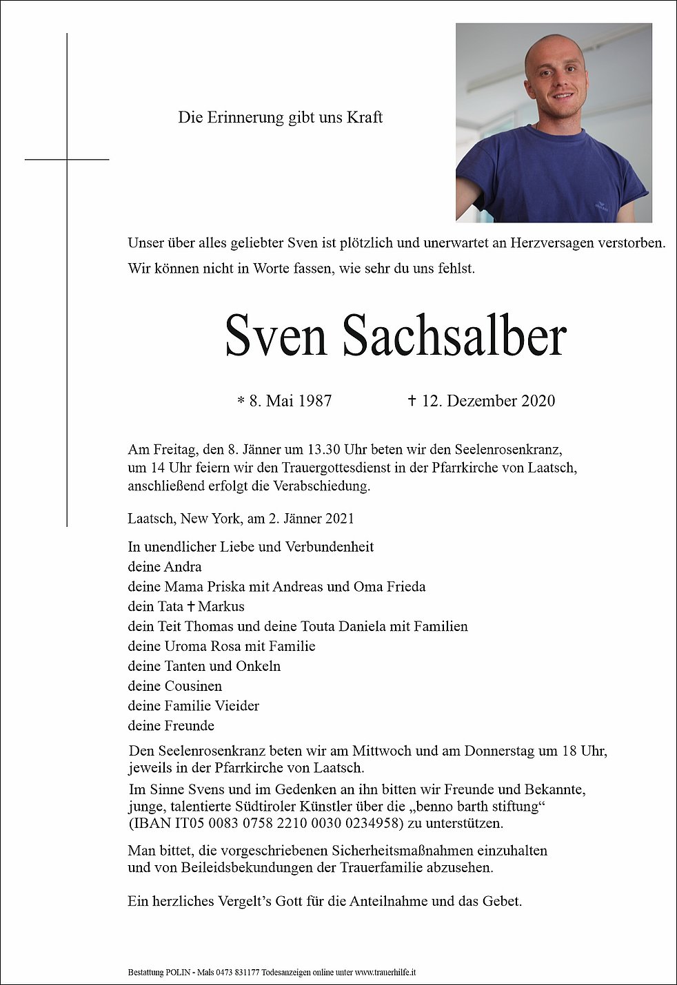 Im Sinne Svens und im Gedenken an ihn bitten wir Freunde und Bekannte,