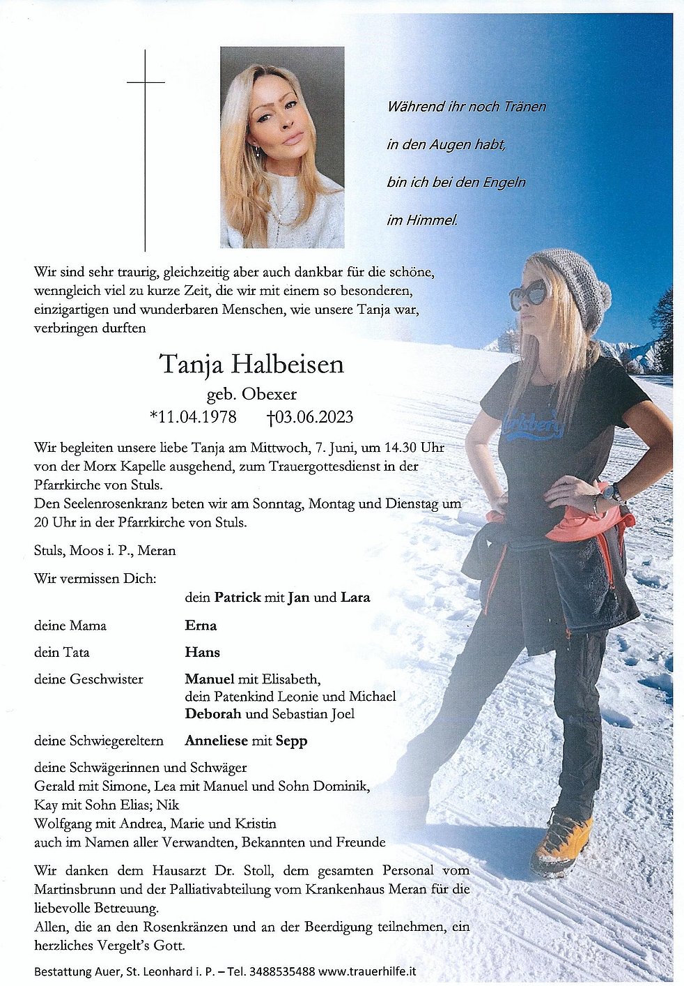 Wir begleiten unsere liebe Tanja am Mittwoch, 7. Juni, um 14.30 Uhr von der Morx Kapelle ausgehend, zum Trauergottesdienst in der Pfarrkirche von Stuls.