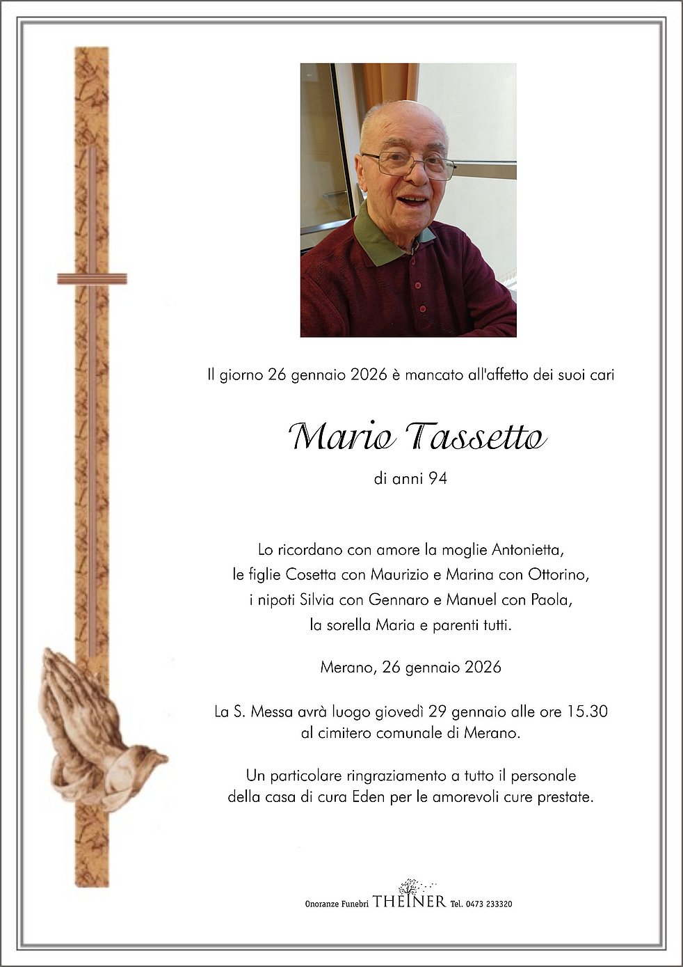 Il giorno 26 gennaio 2026 è mancato all'affetto dei suoi cari