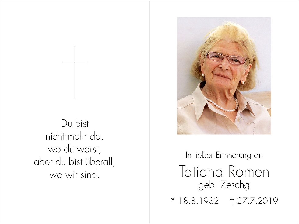 Den Trauergottesdienst mit anschließender Einsegnung feiern wir am Donnerstag, 1. August,
