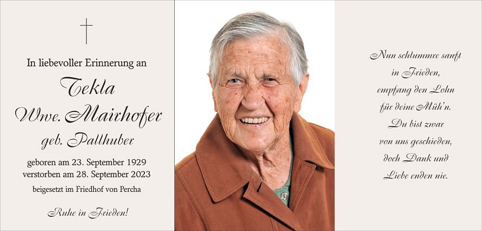 Den Trauergottesdienst feiern wir am Montag, dem 2. Oktober, um 14.30 Uhr in der Pfarrkirche von Percha.