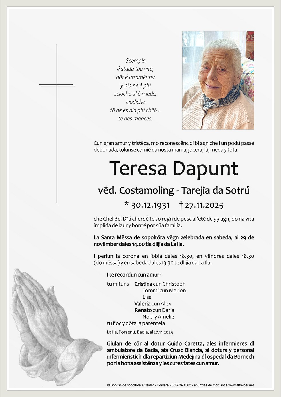 Sintides condolianzes ai familiars.