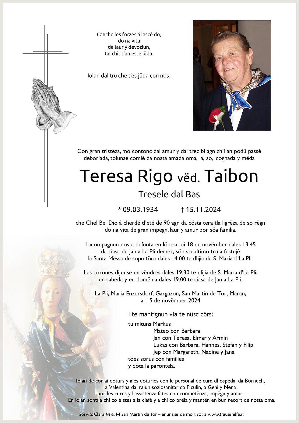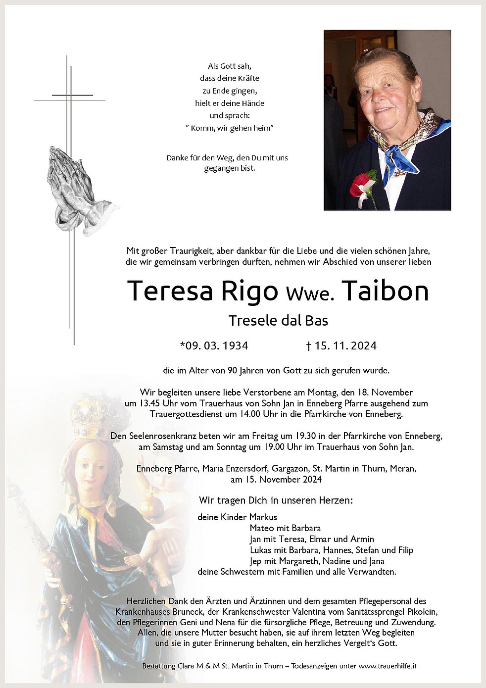 Begräbnisgottesdienst: 18.11. - 14:00 Uhr Enneberg Pfarre