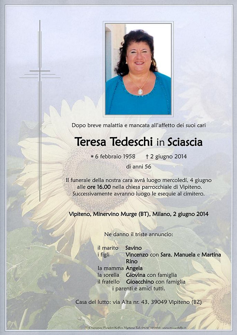Wir begleiten unsere liebe Teresa am Mittwoch, dem 4. Juni um 16.00 Uhr zum Trauergottesdienst in die Pfarrkirche von Sterzing und anschließend zur letzten Ruhe auf den Friedhof.