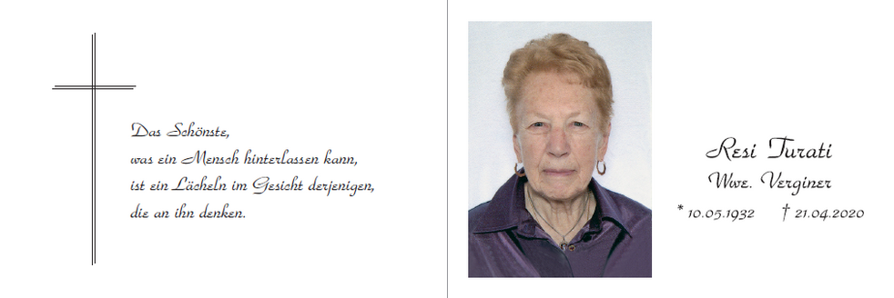 In Liebe und Dankbarkeit nehmen wir Abschied von unserer lieben Mami, Schwiegermutter, Lava und Schwester