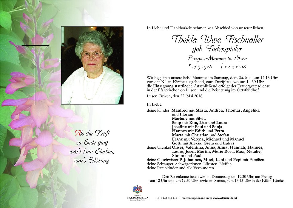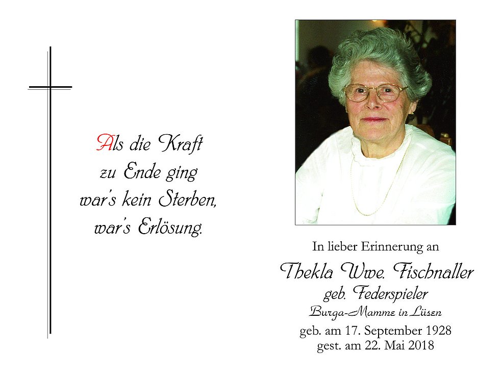 in der Pfarrkirche von Lüsen und die Beisetzung im Ortsfriedhof.