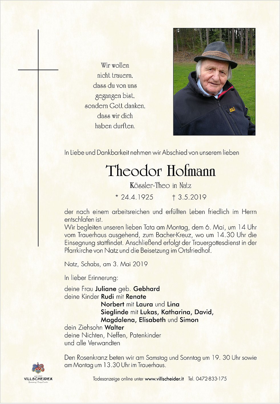 Begräbnisgottesdienst: 06.05. - 14:30 Uhr Natz