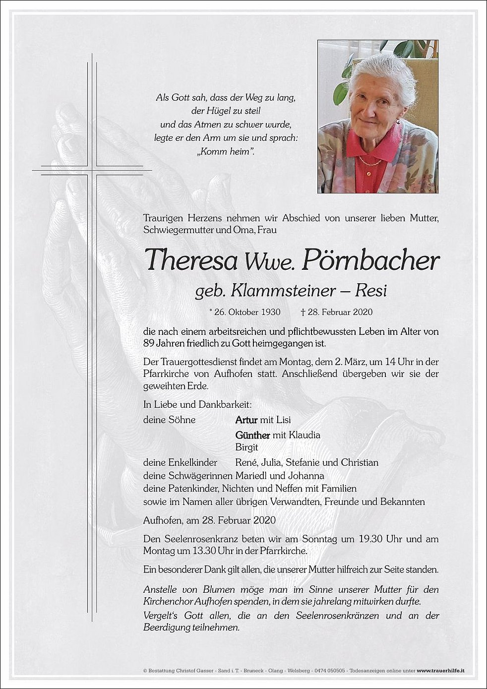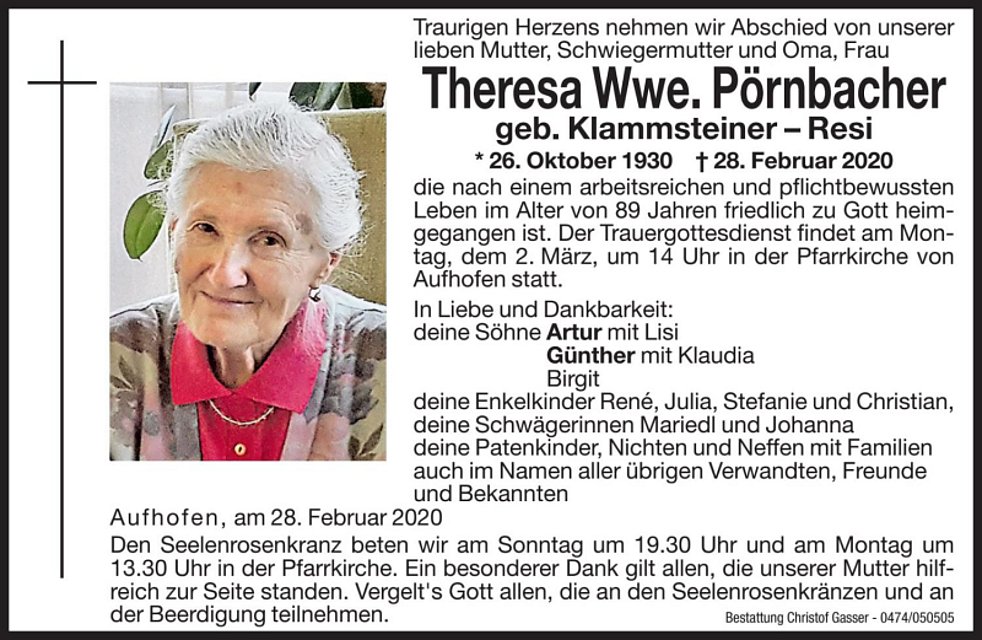 Der Trauergottesdienst findet am Montag, dem 2. März, um 14 Uhr in der Pfarrkirche von Aufhofen statt. Anschließend übergeben wir sie der geweihten Erde.