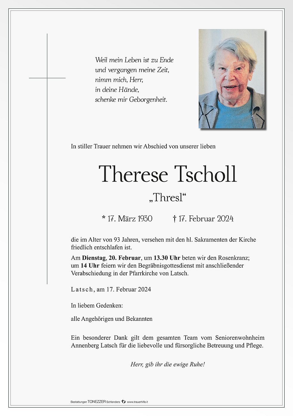 Herr gib Thresl die ewige Ruhe. Aufrichtige Anteilnahme